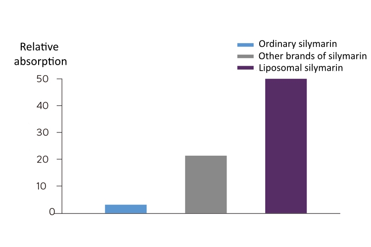 50 vezes mais eficaz no aumento da absorção relativa da silimarina.